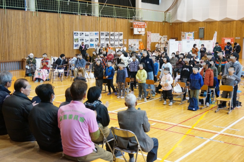 午後は、子どもたちは自由参加。50年前くらいに上村を舞台に放送された『遠くへ行きたい』の番組を上映し、当時撮影に立ち会った方々と一緒に懐かしい時代を思い出す時間がもたれました。その他に、ヨガ講座、よさこい、地域と関わりのある大学生のステージ、など、子どもたち、地域の方、保護者、学校職員、みんなで盛りだくさんに楽しめた一日でした。