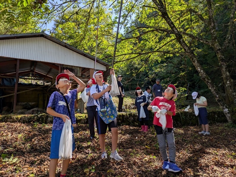 9月16日(火)に上村地区農業振興会議の皆さんにお声がけいただき、中郷馬老沢でクルミ拾い体験をしました。長い棒を使ってクルミの木を揺らすと、大きく実ったクルミの実が落ちてきました。皆で協力して、コンテナいっぱいのクルミを収穫することができました。体験後には、飯田市内の菓子店さんより、上村のクルミを使って作られたお菓子のプレゼントをいただきました。