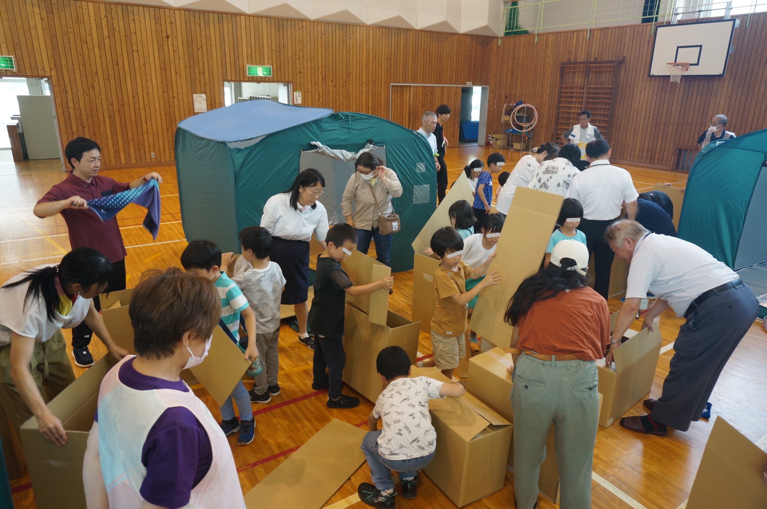 8月22日(金)に、地域PTA共催の講演会を行いました。今年度のテーマは「防災」。体験をしながら、防災のことを学びました。飯田市危機管理課の方を講師に、飯田市地震防災訓練の一環として、上村地区の自治防災会役員の皆さんとともに指定避難所の開設訓練を行いました。子どもたちは避難所開設訓練の中で、「アルファ化米」「組み立てトイレ」「段ボールベット」体験をしました。今年度のKGCキャンプでも防災について考えましたが、「いざという時のことを日頃から意識する」ことを子どもたちとともに考えていきたいです。