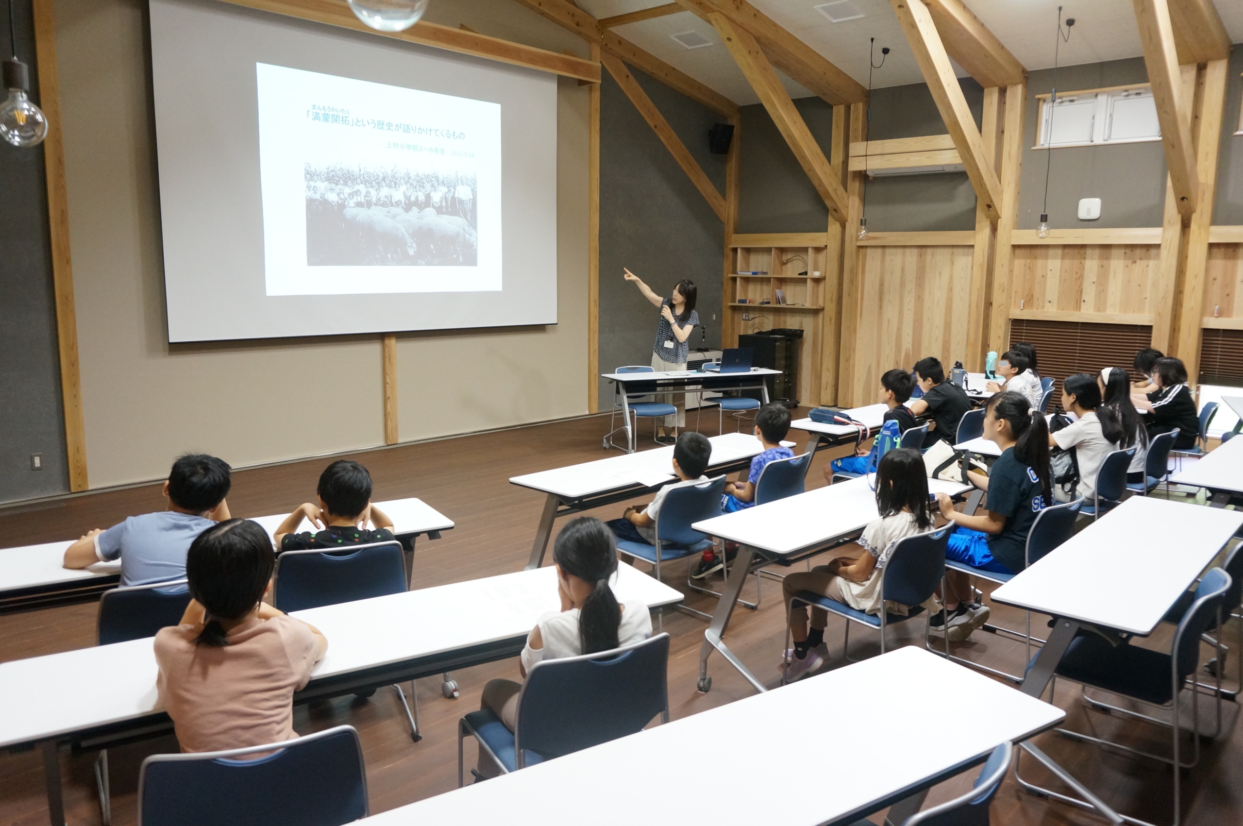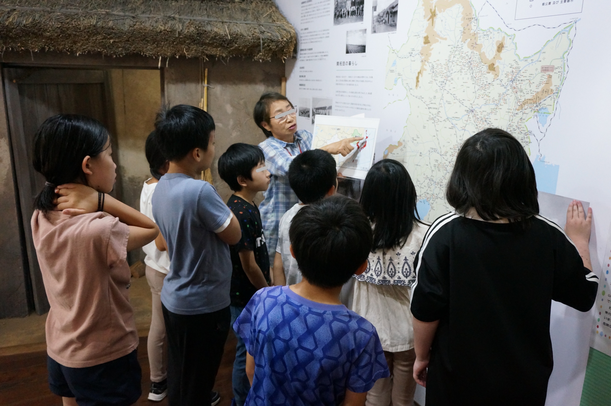 9月18日(木)に3~6年生が、満蒙開拓平和記念館の見学に行きました。最初に館内展示を案内していただき、満蒙開拓の歴史を学びました。子どもたちは、疑問点を質問しながら真剣なまなざしで説明を聞いていました。その後、事務局長の三沢さんと一緒に「満蒙開拓という歴史が語りかけてくるもの」について考える時間をいただきました。子どもたちは、当時の同年代の方が書いた手記から、それを書いたときの状況や思いを想像し、自分の考えを発言しました。戦後、多くを語られてこなかった「満蒙」にかかわる複雑な歴史がいろいろなことを考えさせてくれます。「いろいろな角度から、多面的に、多角的に歴史をみてほしいと思います。自分でない人のことも考える想像力をもってください。一人一人が考える力が、平和を考える力になっていきます。」と、三沢さん。戦後80年となる今年、子どもたちなりの純粋な目と心で、戦争と平和、命の尊さについて考えることができました。