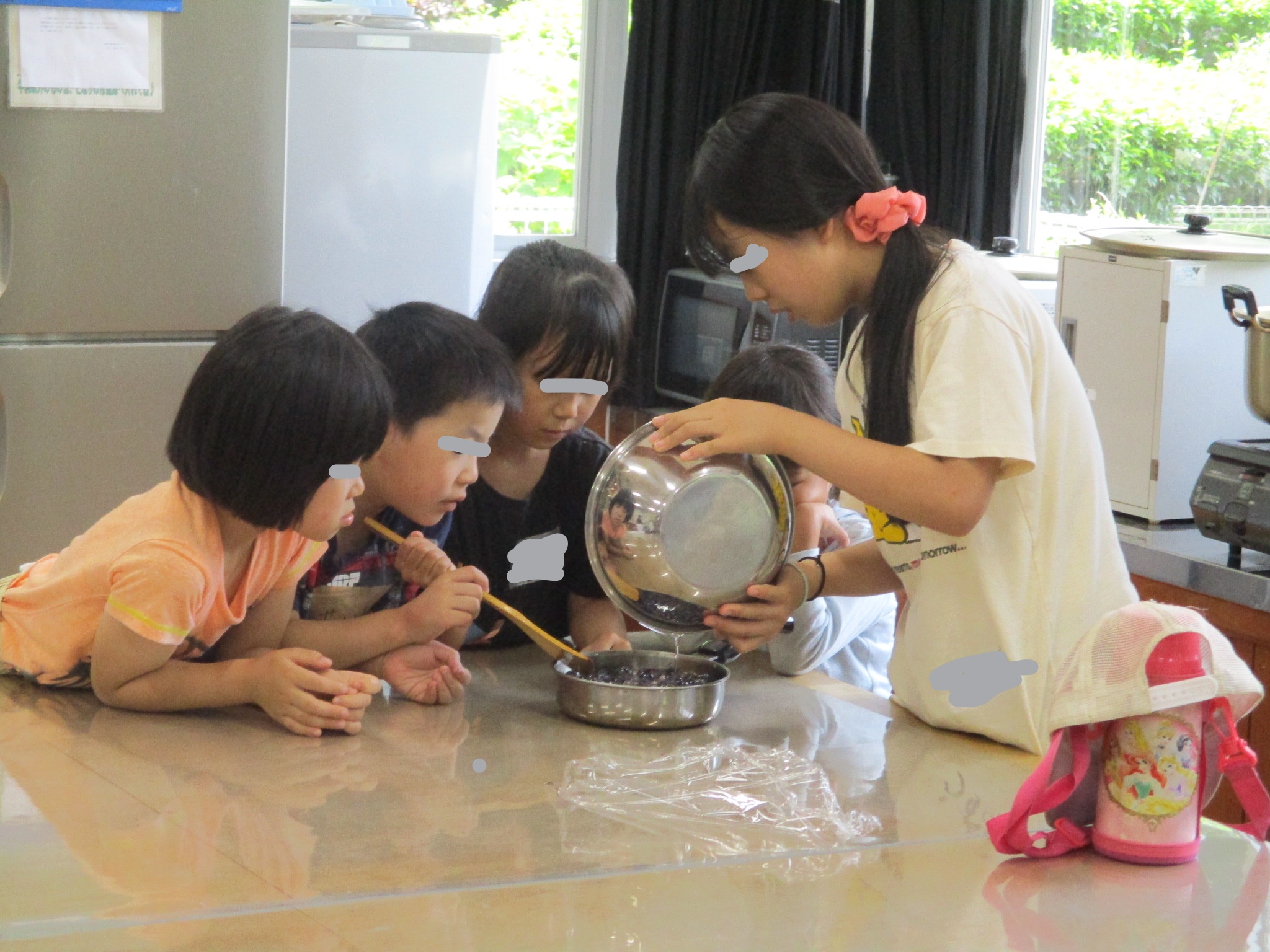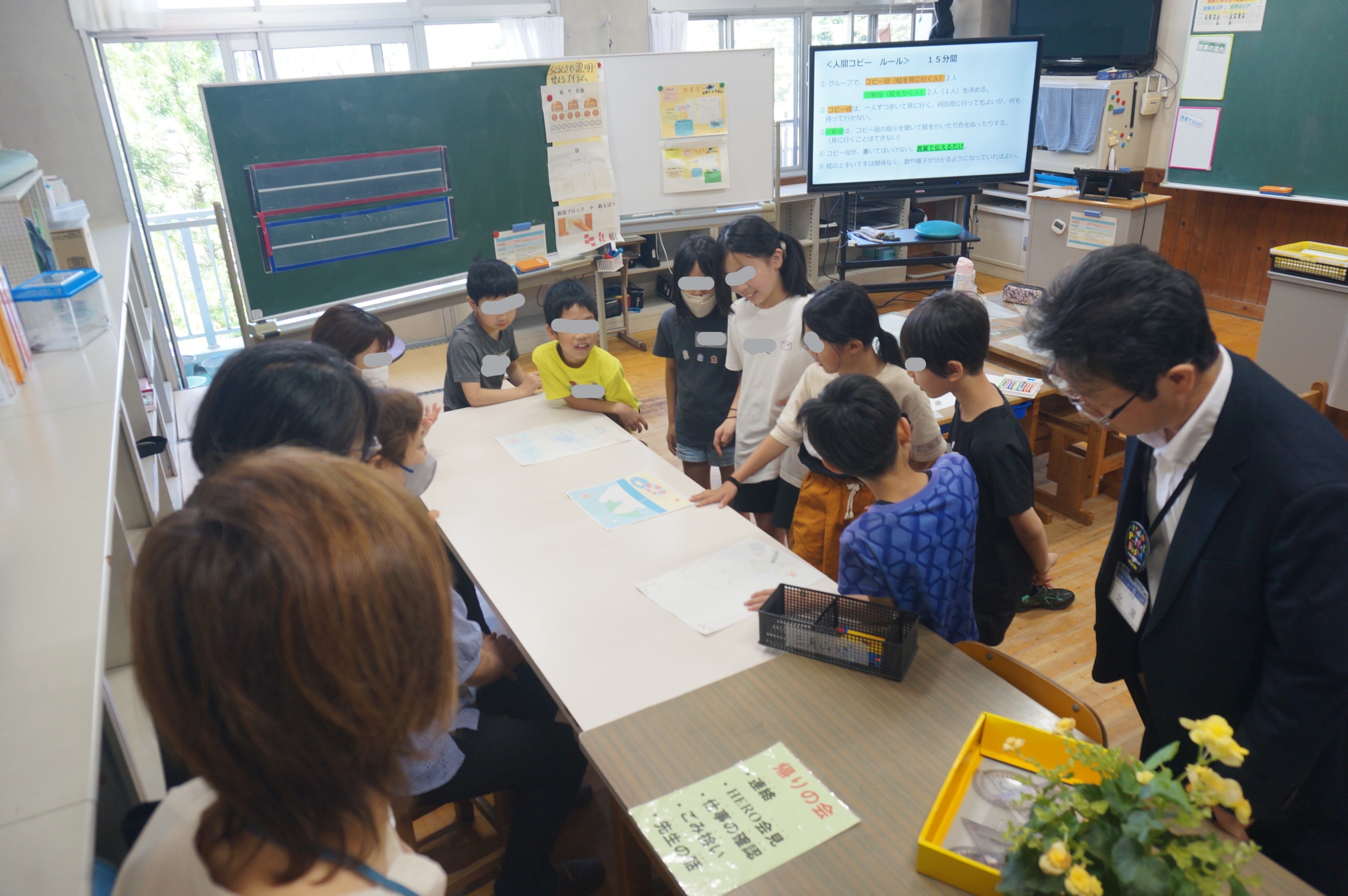 7月19日に特認校説明会・体験入学を行いました。子どもたちは、それぞれの複式学級に入り授業体験をしました。1・2年生と来入児さんは、学校探検をして宝探しをしました。授業後、子どもたちは下栗地区にあるブルーベリー畑でブルーベリーを収穫し、学校に戻り、ブルーベリーを使ったデザート作りを楽しみました。その間、保護者の皆さんは、学校説明会に参加していただきました。