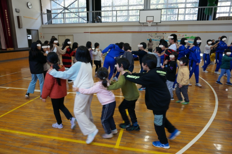 11月21日(金)に遠山中・和田小と三校での絆交流会を行いました。最初は、それぞれの学校で考えたレクレーションを楽しみました。続いて、各校の総合的な学習の時間・生活科の学習の発表をブース毎に行い、順番で見合いました。上村小の3・4年、5・6年は総合の学習で学んできたことの発表、1・2年生は、自分たちが工作してきた商品を平べったいクリの実のお金で買ってもらいました。商品の値段は「3クリクリ」。三校とも遠山郷を題材とした学習を進めており、お互いに学び合う時間となりました。