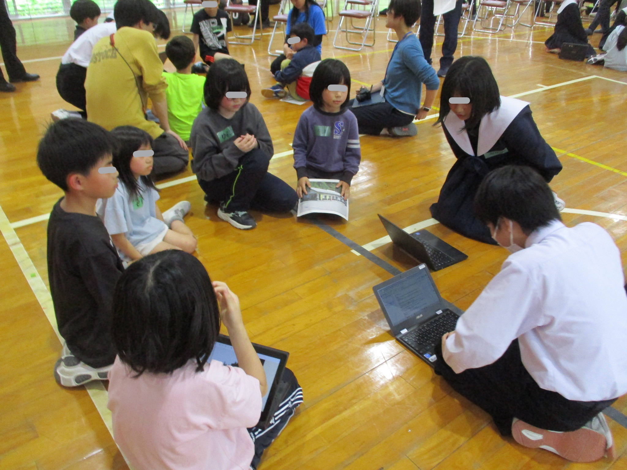 5月16日(金)に遠山中学校で遠山郷学園三校(遠山中・和田小・上村小)の絆交流会が行われました。最初は、各校が企画したゲームを楽しみました。上村小の企画は(懐かしの?)「花いちもんめ」でした。それぞれの学校の企画に体をいっぱい使って楽しむことができました。次に、「私の好きな遠山郷」をテーマにグループごとの話し合いをしました。一人一人が写真を持ち寄ったりしながら発表をしました。中学生が進行をしながらそれぞれの発表をつないでくれました。終了後は、遠山郷学園学校運営協議会が行われ、地域の皆さん、保護者の皆さんと一緒に、大人も、「遠山郷学園として大切にしたいこと」の意見交換をしました。